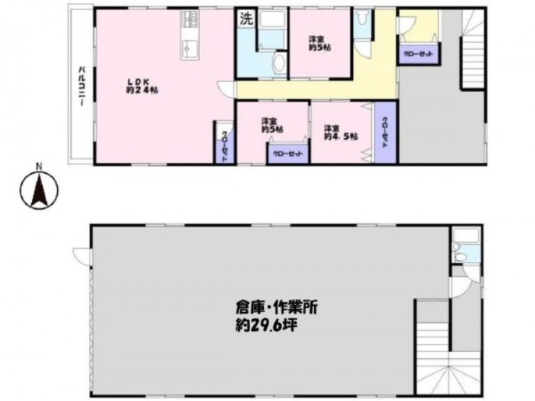 | 物件詳細 | 1階:約130.82㎡、2階:約131.53㎡ 2.5tクレーン(残置物) |