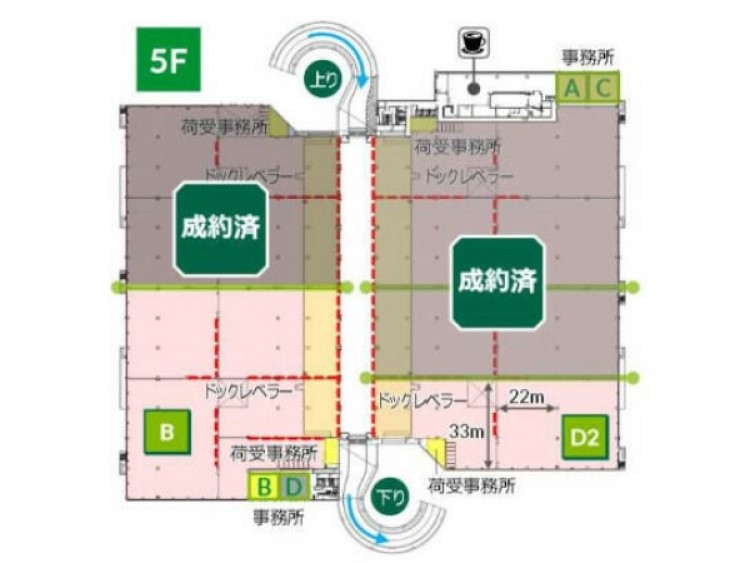 | 物件詳細 | 5階B区画部分が賃貸部分です。 防災センターあり。 24時間有人管理。 免震構造。 非常用発電機あり。 高床式 1m。 床荷重 1.5t/㎡。 梁下有効高 5.5m。 倉庫柱間 11m×11m。 別途契約事務所あり(要空確認)。 別契約駐車場あり(要空確認)。 倉庫業申請可能。 LEED認証プラチナ取得。 工場使用相談可。 |