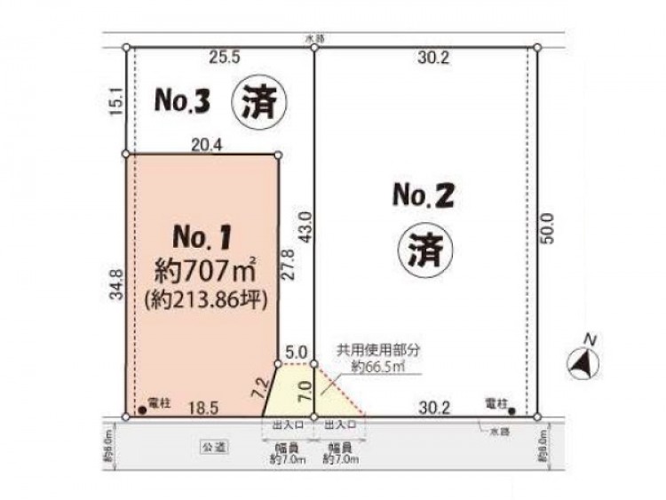 | 物件詳細 | ■土地面積:実測2786.95㎡のうち、約707㎡ ■上記土地面積の他に、共用使用部分約66.5㎡があります ■特定都市河川浸水被害対策法、日影規制 |