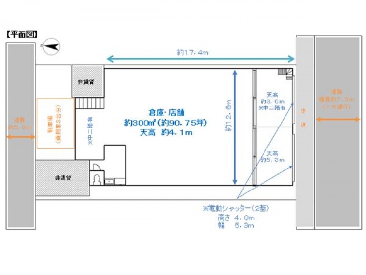 | 幅員 | 南側(公道)約7.0m 北側(公道)約5.0m |