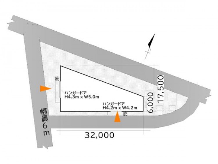 物件詳細 | ■敷地:189.76坪(627.30㎡) ■シャッター:高さ4.3m 幅5.0m ■天井高:5.0m ■前面道路:6m ■中途解約違約金 アリ |