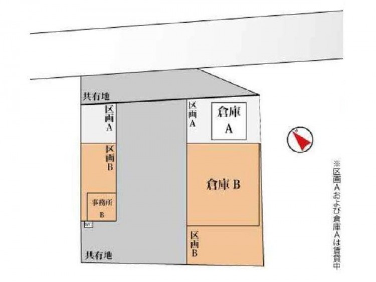 | 物件詳細 | 倉庫:約195㎡ 事務所:約29.81㎡ 区画1:約78.0㎡ 区画2:約289.9㎡ |
