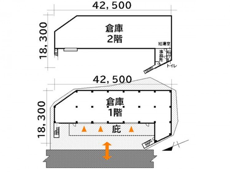 | 物件詳細 | ■建物裏に駐車場あり:500㎡(別途450,000円) ■貨物リフト1600kg(倉庫中央部:幅2.5m奥行1.5m高さ2.1m) ■大型トラック接車可能 ■2階:事務所区画あり(トイレ男女別) ■2階:倉庫部分エアコンあり(残置) ■シャッタ-(幅4.0m高さ3.7m) ■使用面積詳細/1階:493.52㎡(149.29坪) 2階:499.55㎡(151.11坪) 合計:993.07㎡(300.4坪) ■敷地面積:844㎡(255.31坪) |