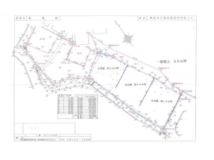 物件詳細 | 一括貸:約300坪 月額900,000円 A区画:約100坪 月額300,000円 B区画:約100坪 月額300,000円 C区画:約100坪 月額300,000円 |