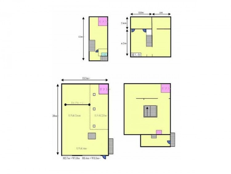 物件詳細 | 1tクレーンあり 1F約81坪 中2階約18坪 2F約86坪 3F約26坪 |