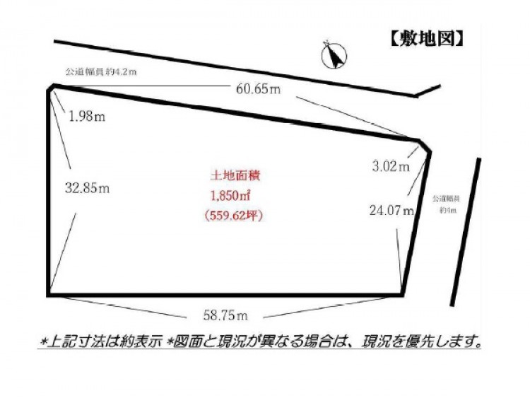 幅員 | 北東側 公道約4.2m 南東側 公道約4m |