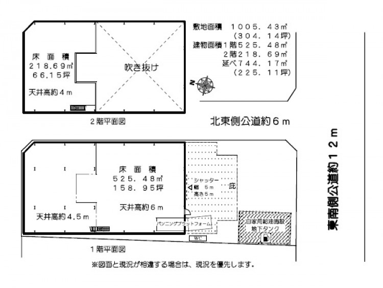 | 物件詳細 | 1階:約525.48㎡、2階:約218.69㎡ |