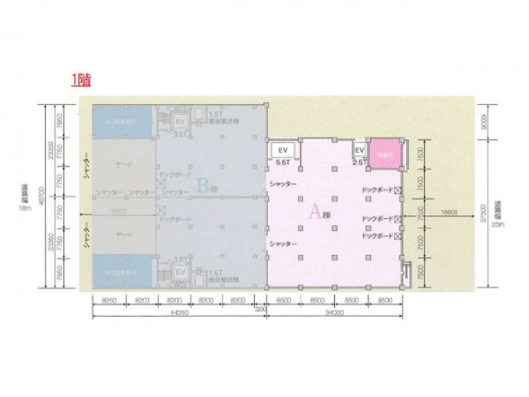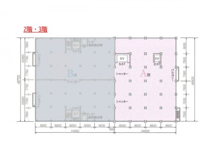 | 物件詳細 | 1階:約1275㎡(内事務所約63㎡×2部屋) 2階・3階:各約1581㎡ |