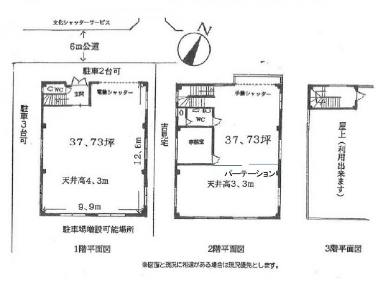 | 物件詳細 | 1階:約124.06㎡、2階:約124.74㎡、3階:約10.12㎡ 駐車スペース7台分あり |