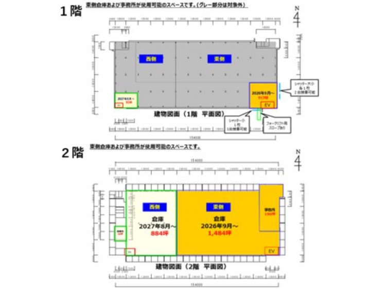 | 物件詳細 | ■貨物エレベーター(積載3.5t) ■リフコン(最大搬送物重量1.5t) ■床荷重1t/㎡ 天高:約6.5m ■設備:男女別トイレ、空調完備、事務所、食堂、更衣室 ■駐車スペース:2,750円(税込)/台 ■設備機器等を含む維持管理費(応相談) ■保証金 3~6ヶ月 契約期間により変動 ■契約期間 3~5年、普通借・定借、応相談 ■使用面積詳細 倉庫1階:307.44㎡(93坪) 倉庫2階:2922.31㎡(884坪) 事務所2階:119.01㎡(36坪) 合計:3348.76㎡(1013坪) ■JR相模線【原当麻】駅 車15分 |