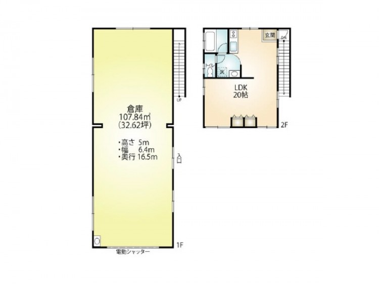 | 物件詳細 | 天井高約5m 2階は事務所兼居住スペース、エアコン2台照明器具付き |