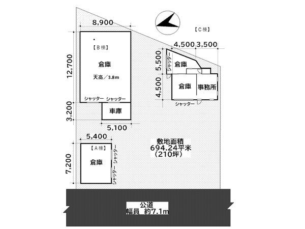 | 物件詳細 | ■敷地面積210坪!(694.24㎡) ■トイレなし ■井戸水あり ■交通至便 ■使用面積詳細/A棟:38.9㎡(11.76坪) B棟:129.3㎡(39.11坪) C棟:59.4㎡(17.96坪) 合計:227.6㎡(68.84坪) |