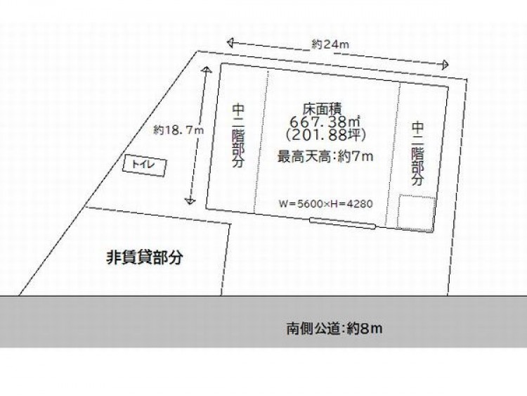 | 物件詳細 | ★天高最大7m! ★駐車スペースあり! ★倉庫内事務所スペースあり! 諸条件ご相談ください! |