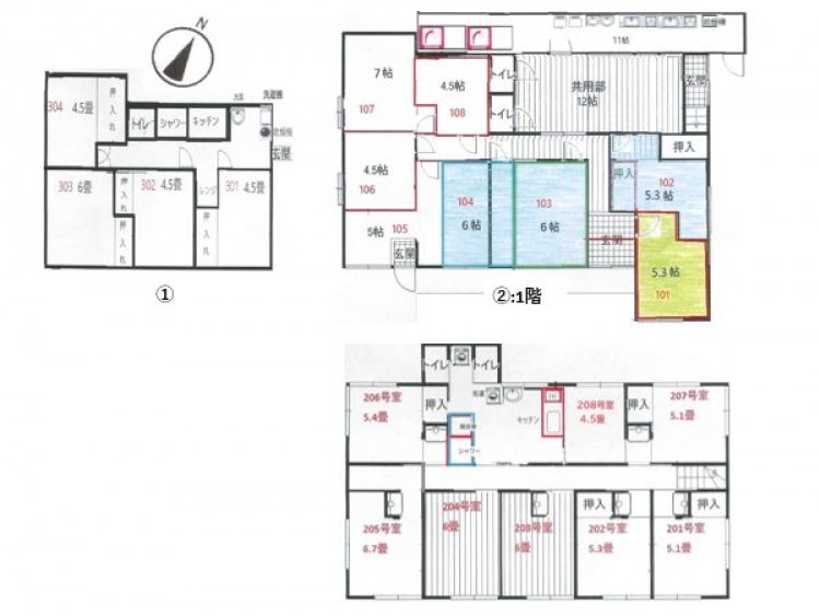 | 物件詳細 | ■オーナーチェンジ物件!二棟一括売 ■満室想定年収:12,722,400円/表面利回り 9.78% ■20部屋中17部屋入居中(2025年1月13日時点) ※満室想定年収は、満室時における1年間の予定収入です ※当社は、想定賃料が確実に得られることを保証できません ※想定収入は、公租公課・地代その他当該物件を維持するために必要な経費の控除する前の収入で計算しております。 ※オーナーチェンジ物件につき、現賃貸借契約継承が条件となります。 ★レントロール 有★設計図書 無 ★固定資産税評価 土地:82,216,110円(令和7年度) 建物: 2,444,600円(令和7年度) ★固定資産税・都市計画税:合計215,400円(令和7年度) ★建築確認:無 ★完了検査:無 ※お気軽にお問い合わせください。 ■建物詳細/①木造瓦葺平屋建・昭和36年3月新築・52.89㎡(16坪)/②木造亜鉛メッキ鋼板葺2階建・昭和40年11月新築・207.07㎡(62.64坪) |
